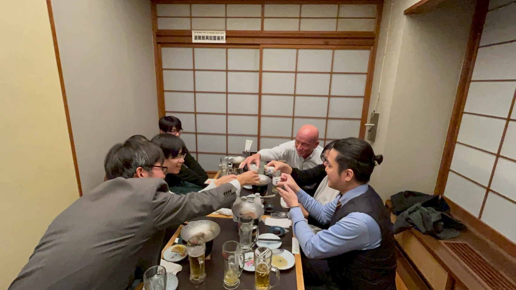 おいしい夕食をいただき、食後には「はし拳大会」で盛り上がりました。