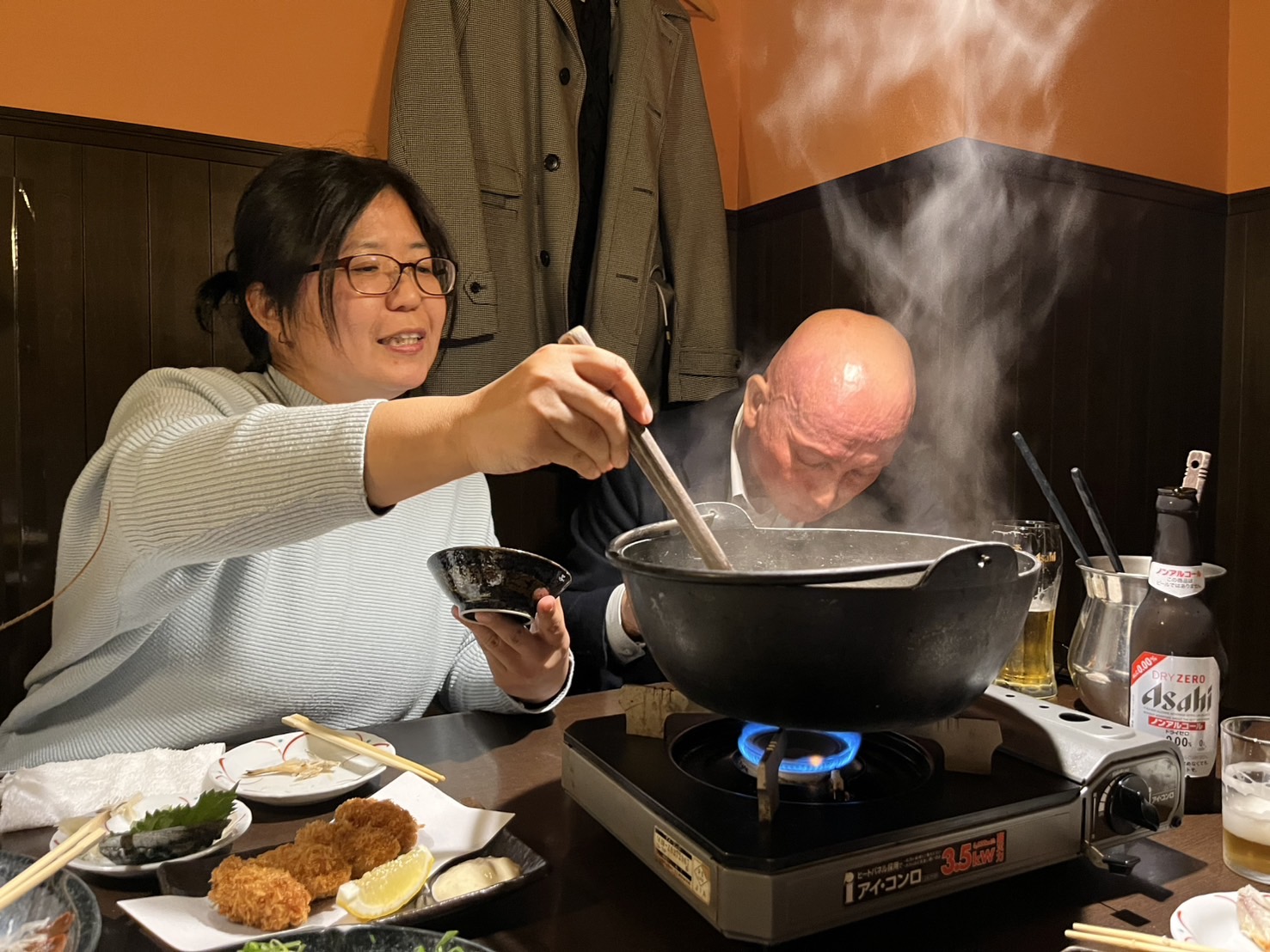 夕食は全員で博多もつ鍋をおいしくいただきました!